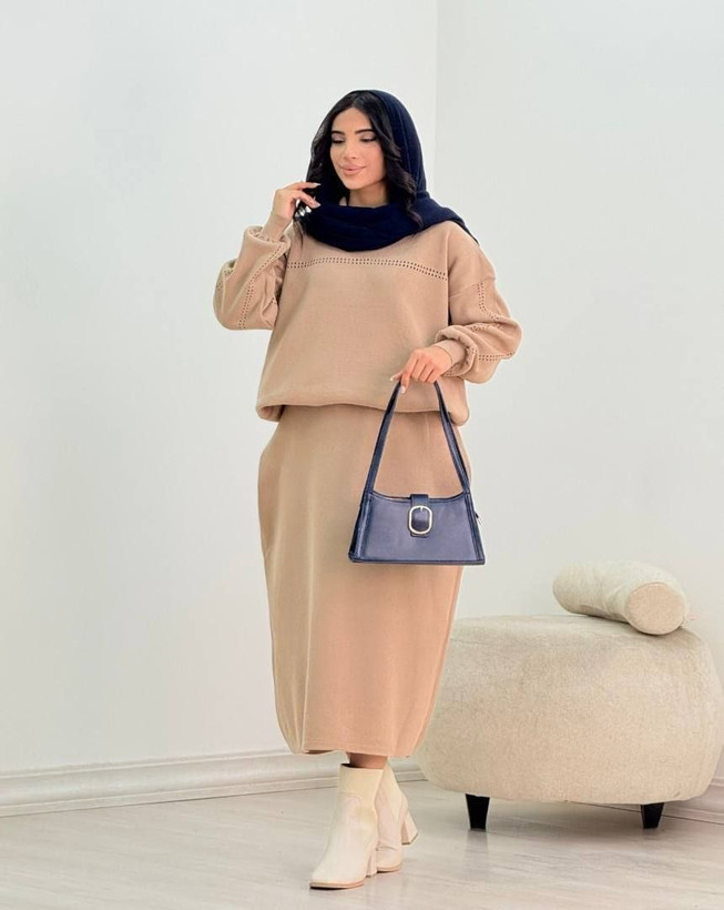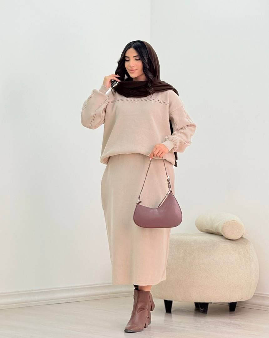 توضیحاتیه ست جذاب که با همه چی استایلش قشنگ میشه 😎 🍂🍁کالکشن پاییزه 1404 🍁🍂 😍مدل بلوز دامن بافت خطی 🟣 سایز بندی فری سایز 36 تا46 🧥 جنس🧶نخ بافت درجه۱ 🟠 قددامن حدود۹۰، بلوز ۶۳ تنخور فوقالعاده 😍
