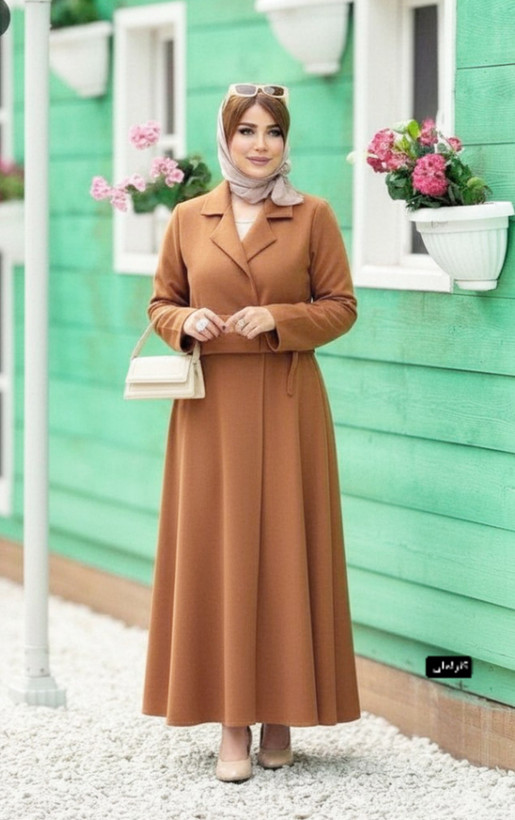 توضیحاتجنس مازاراتی ✨قد کت 50 ✨قد آستین 60 ✨دور سینه 110 ✨جلو کت لایه کوبی شده ✨قد دامن95