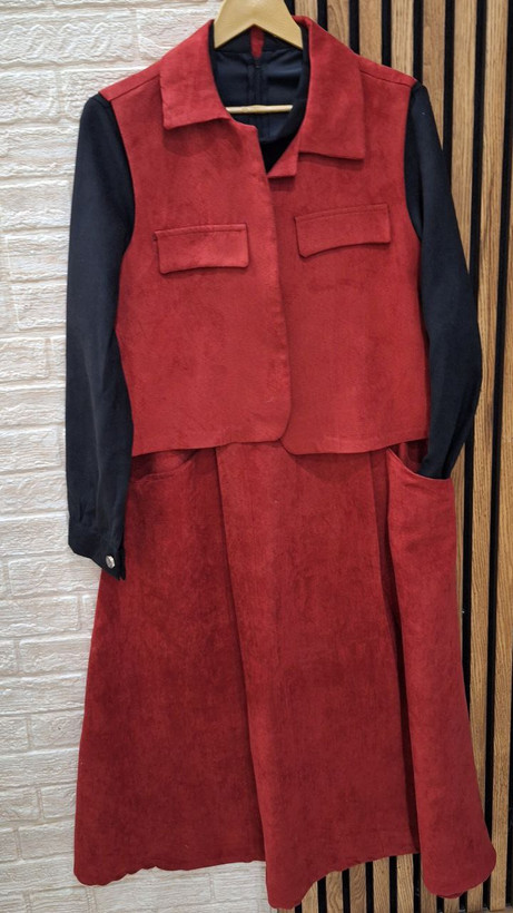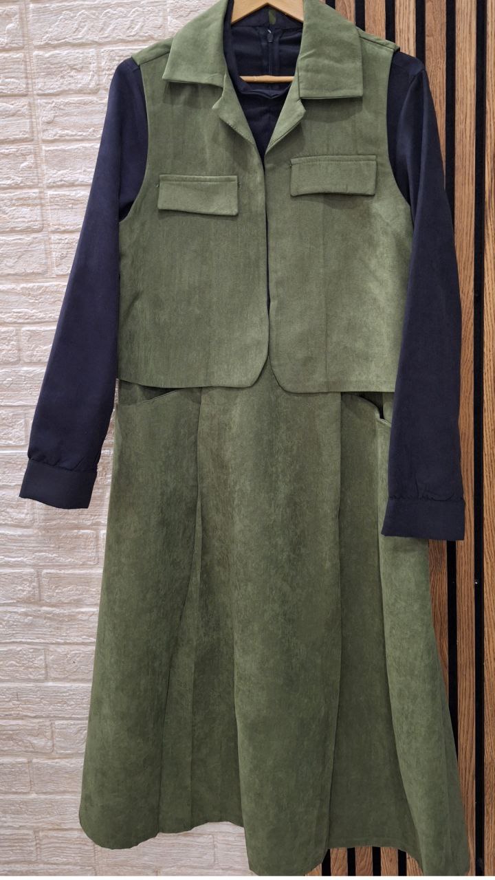 توضیحات: سایز دو سایز مناسب 36تا 46 ✍توضیحات اندازه های کار 📌قد جلیقه 48 پیراهن 120 📌قد آستین از سرشونه 60 📌دور سینه سایز یک 100 دو 106 🧬جنس پارچه مخمل پشت ساتن درجه یک ' مناسب تمام فصل ها * کیفیت پارچه ،دوخت و تنخور عالی