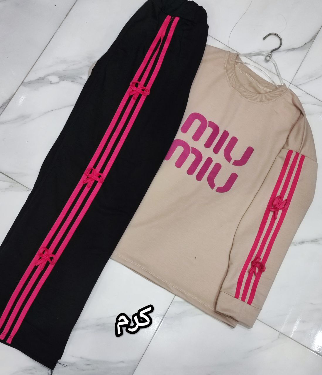توضیحات: شناسه: #100318 💎 نام: ست پاپیون 📋 توضیحات: بلوز👇 🌹دورسینه112 🌹قد66 شلوار👇 🌹دورکمردرکشسانی106 🌹قد100 💎 جنس: اسپان ضخیم