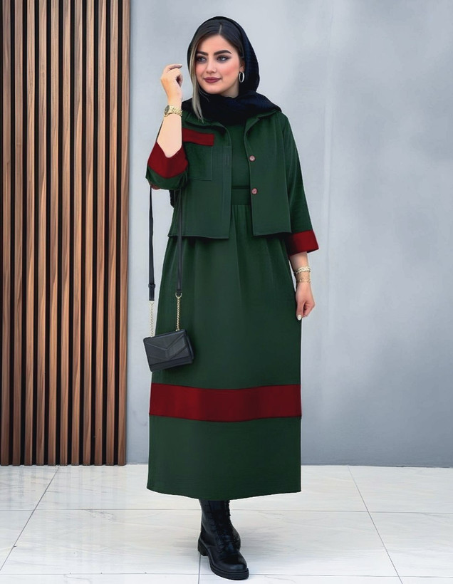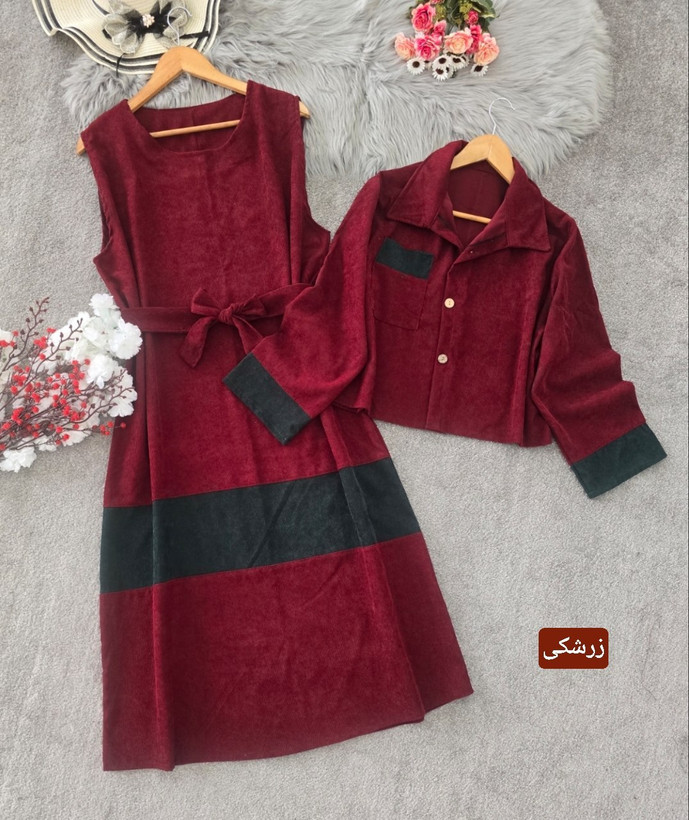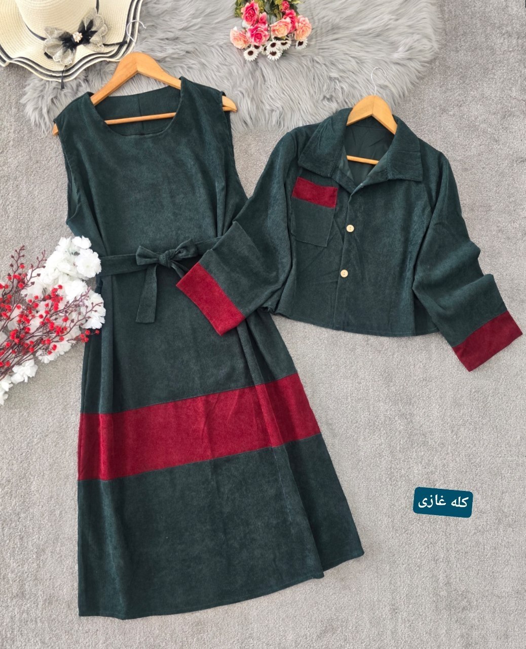 توضیحاتجنس مخمل کبریتی ریز 👚قد کت 51 دور سینه 114 قد آستین از یقه 67 دور بازو 38 👗قد سارافن 122 دور سینه 120 فری سایز (38_ 50) دور باسن 130 دمپا پایین سارافون 146 والی💎