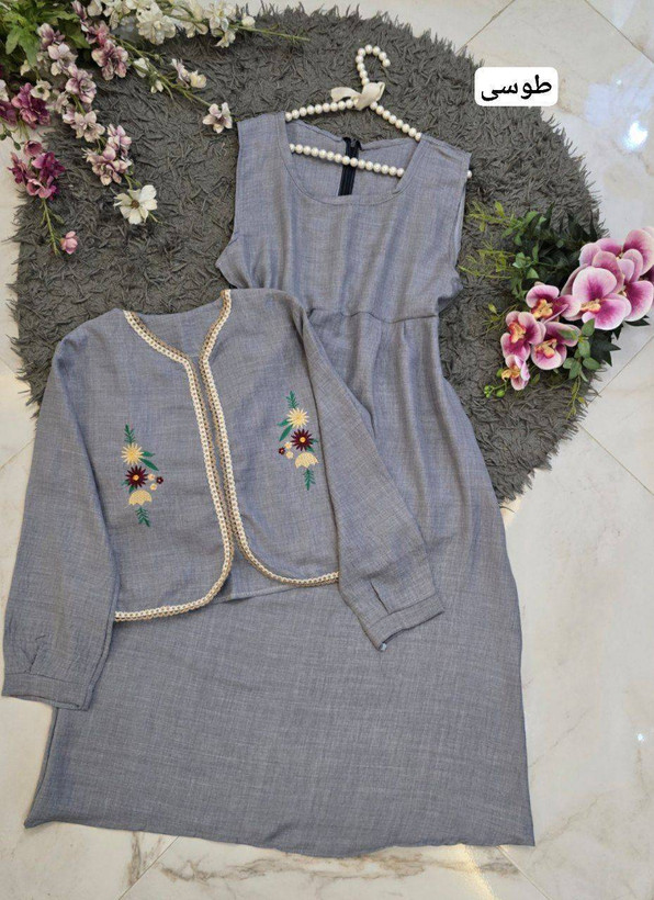 توضیحات: ✅قد سارافون 110 ✅دور سینه سارافون100 ✅قد کت 48 ✅دور سینه کت 100 ✅قد آستین کت 55 ✅دور بازو 40