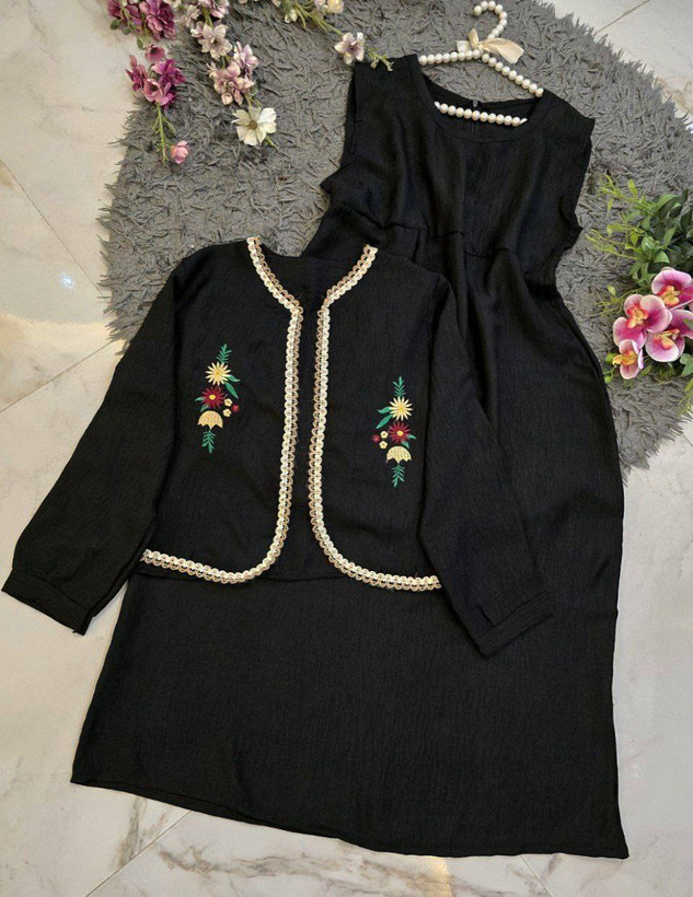 توضیحات✅قد سارافون 110 ✅دور سینه سارافون100 ✅قد کت 48 ✅دور سینه کت 100 ✅قد آستین کت 55 ✅دور بازو 40