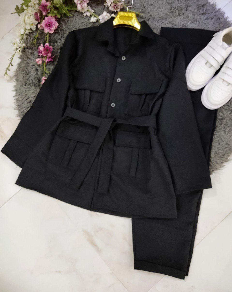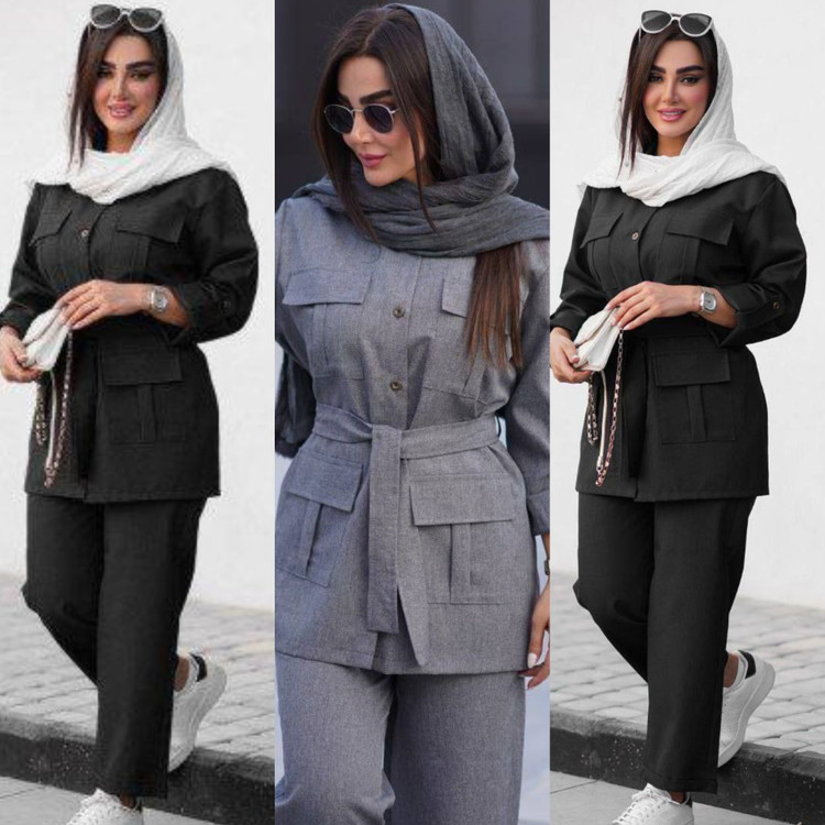 توضیحات✅قدکارحدودا۷۸ ✅قداستین۵۷✅ دوربازو۴۵ ✅دورسینه110 ✅قدشلوار۹۰ ✅دورران60✅دمپا۴۰ پشت کمر شلوار کش خورده نفیس💎💎