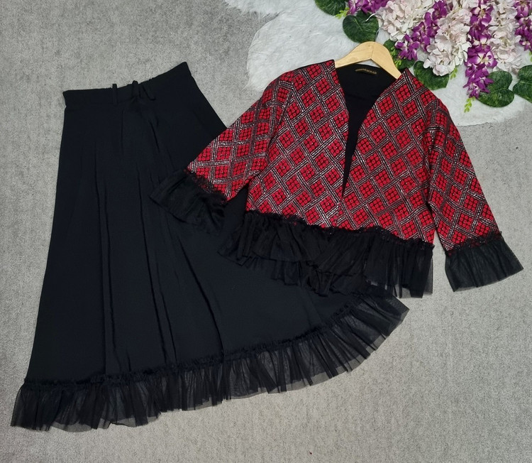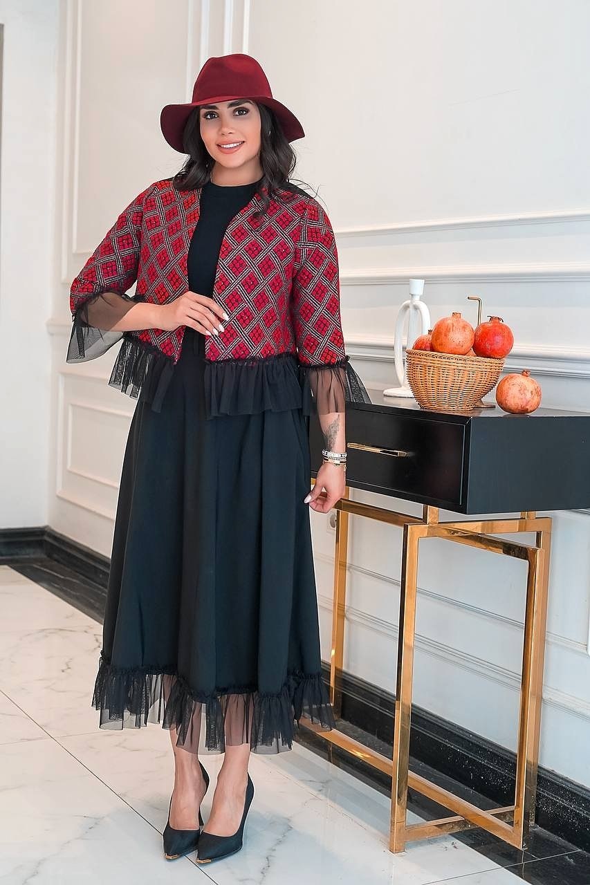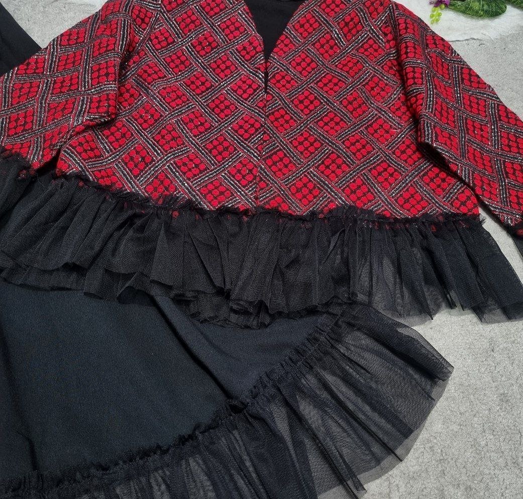 توضیحات.: توضیحات: قد 58 دورسینه 104 استین از کنار یقه 59 بازو 34 دامن 88 تنخور عالیییی پشت کمر دامن کش خورده پل کمربند داره 💎 جنس: تافته و مازراتی نفس💎