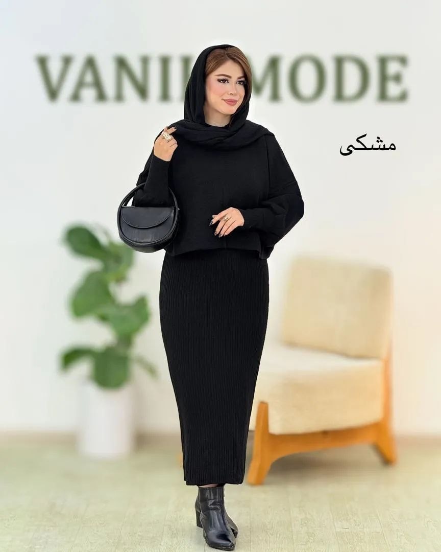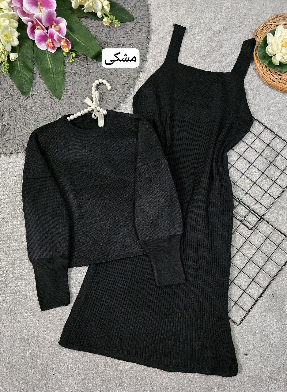 توضیحات.: ☑️قدسارافون 110 ☑️قد رویی 45قد استین 50 ☑️دور سینه 110 سانت حدودا 🖤🖤دو تیکه سارافون و رویی