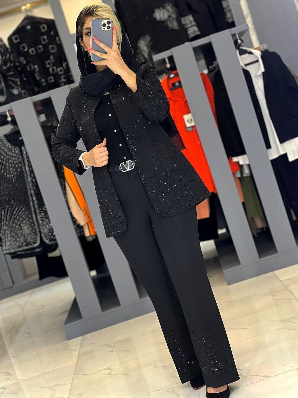 توضیحات✅قد کت حدودا 80 ✅قد شلوار حدودا 100 ✅شلوار دمپا و کمر کش و زیپ و دکمه دارد ✅کت غزن دارد ✅نگین ها پرسی و ریزش ندارد ✅سنگ شیشه ای کار شده 🧵جنس : مازراتی اعلااا👌👌 🖌 رنگ بندی : ژورنال -
