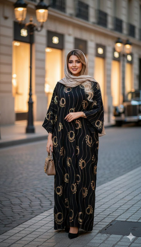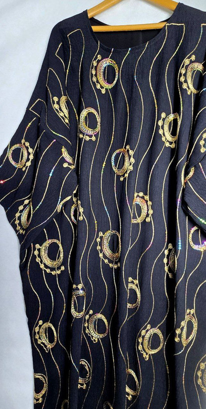 توضیحاتقد 145 دارای بند تنظیم پشت لباس ساده جنس اسالیزه و خامه دوزی پولک دوزی شده
