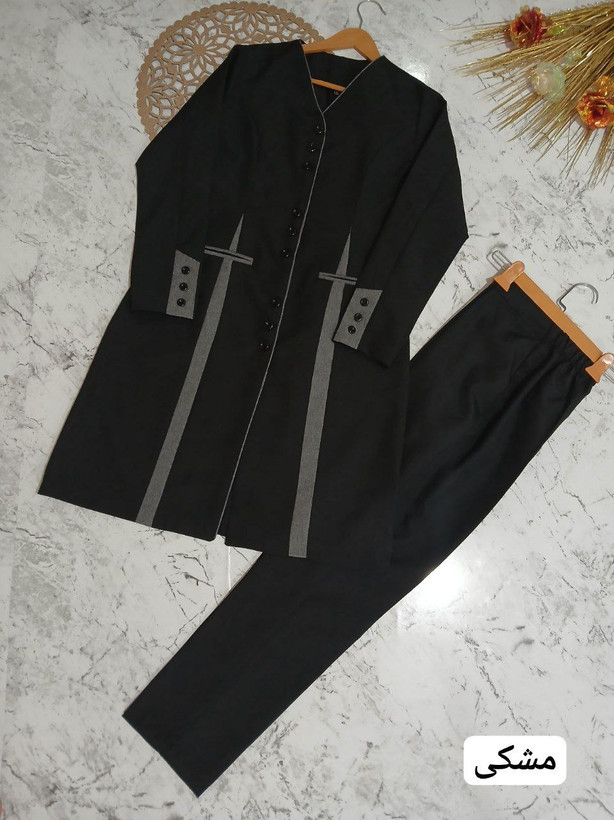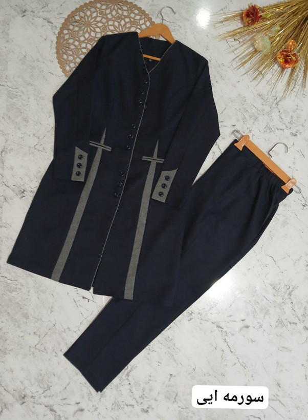 توضیحات.: قد مانتو حدودا 100 🌿قد شلوار 100 🌿پشت کمر مانتو بند بخوره 🌿کمرشلوار از پشت کش و جلو زیپ و دکمه دارد 🌿لبه های مانتو مغزی دوزی شده👌 🌿آستین سه دکمه نمادارد