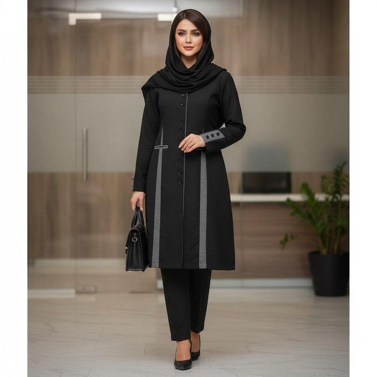 توضیحات.قد مانتو حدودا 100 🌿قد شلوار 100 🌿پشت کمر مانتو بند بخوره 🌿کمرشلوار از پشت کش و جلو زیپ و دکمه دارد 🌿لبه های مانتو مغزی دوزی شده👌 🌿آستین سه دکمه نمادارد