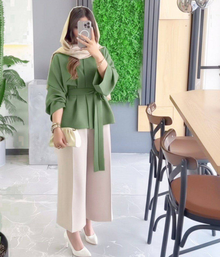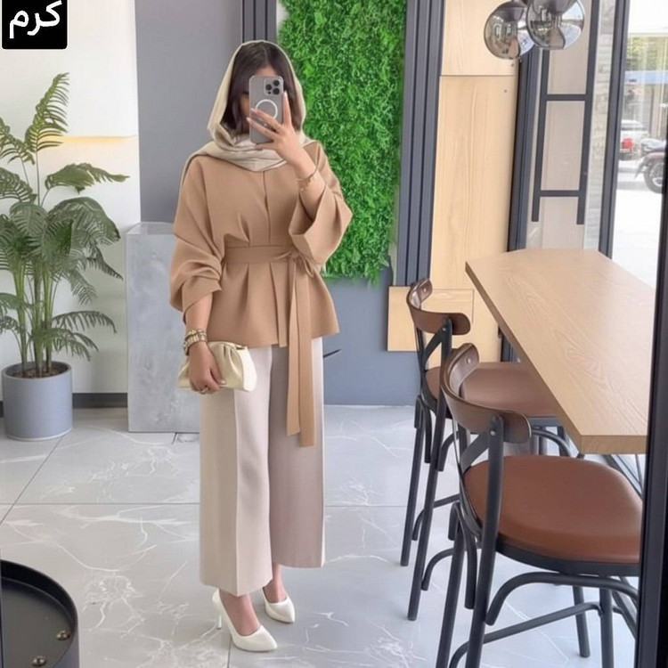 توضیحات: 💫قد مانتو 65 💫قد آستین 55 💫دور سینه 115 💫کمر دار 💫قد شلوار 90 🌹رنگ شلوار ارسال 18اسفند رنگ شلوار ها استخوانی ناز💎