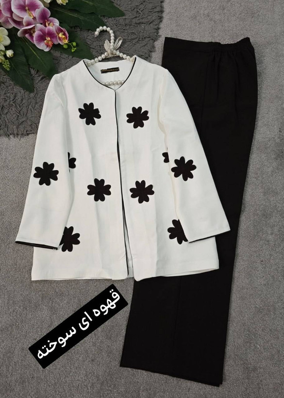 توضیحات..: ❤️ قد شلوار 103 حدودا ❤️ قد کت 70 سانت حدودا ❤️ دور سینه 107حدودا ❤️ قد آستين 55 سانت حدودا 🍀جلوی کار کاملا لایه کوبی شده 🍀 شلوار بگ پشتش هم کش داره جلو وهم دکمه هم زیپ داره 🍀بسیار با کیفیت 🍀نفیس