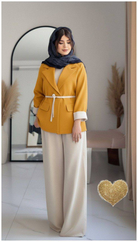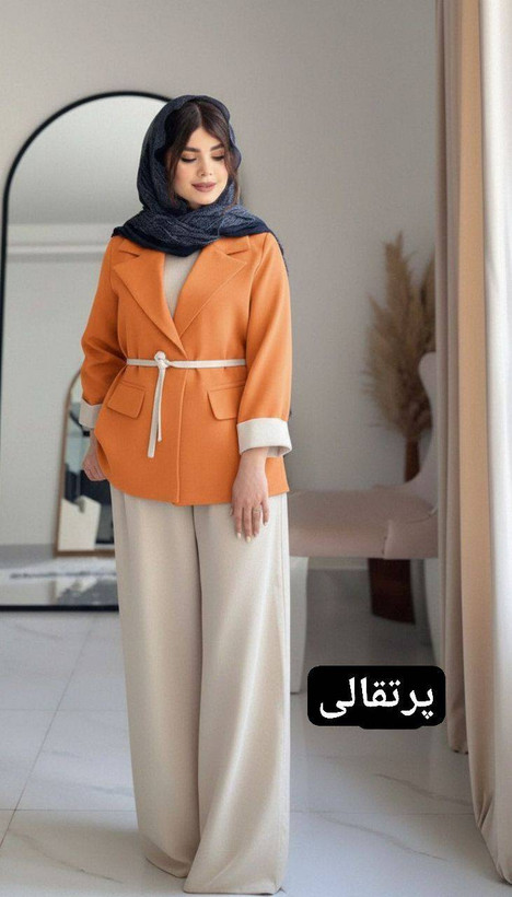 توضیحاتمازاراتی فری تا46⚡️قد کت73 ⚡️قد آستین 58 ⚡️دور سینه 108 ⚡️جیب نما ⚡️کمربند دار جهت تنظیم سایز کمر ⚡️قد شلوار 105 ⚡️پشت کمر شلوار کش نیل