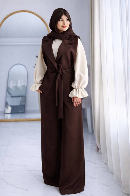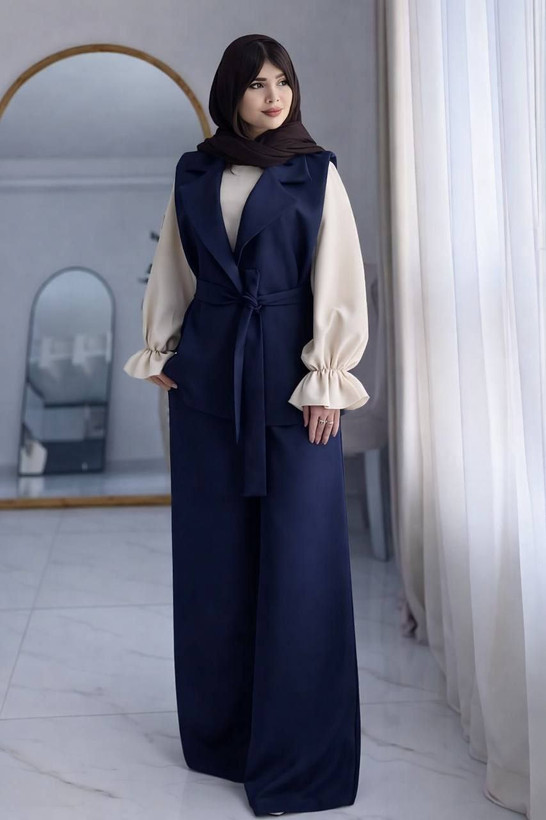 توضیحات: 🎨 رنگ 3 رنگ (مشکی،قهوه ای ، سورمه ای) رنگ شومیز کرم استخوانی 🟠 قدحدود وست 67، قد شلوار حدود108، شومیز حدود55 میری