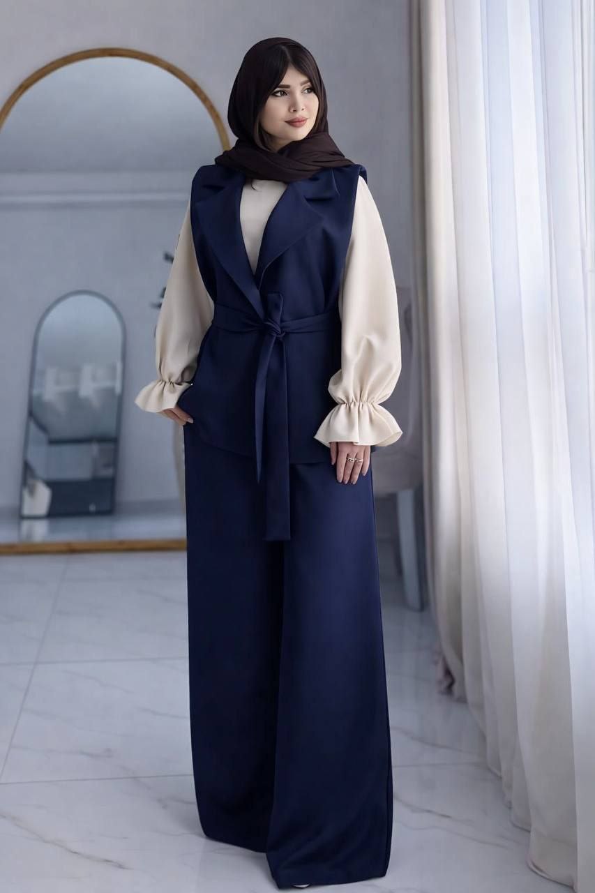 توضیحات🎨 رنگ 3 رنگ (مشکی،قهوه ای ، سورمه ای) رنگ شومیز کرم استخوانی 🟠 قدحدود وست 67، قد شلوار حدود108، شومیز حدود55 میری