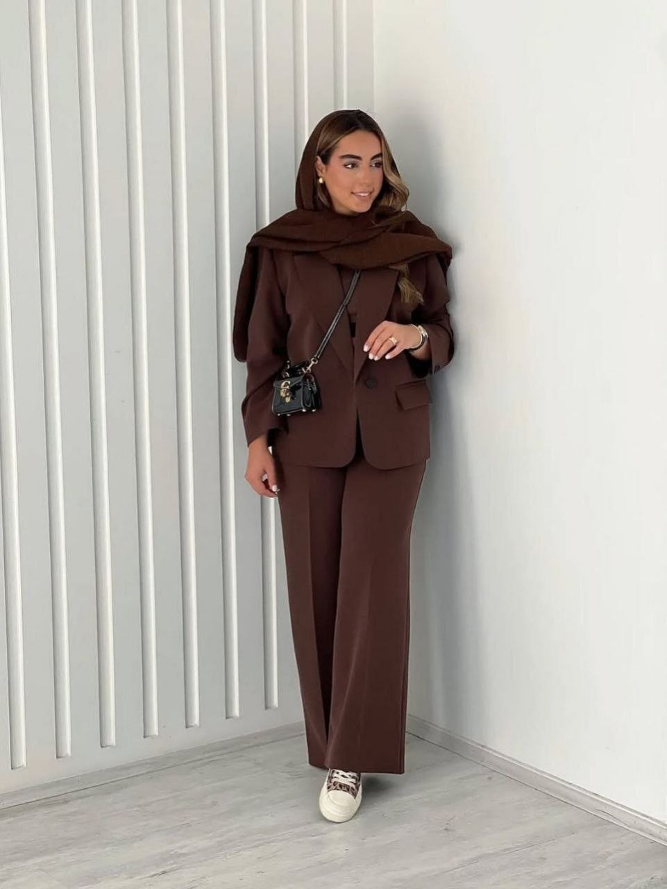 توضیحات🟣 سایز بندی فری 36تا46 دور سینه ۱۱۵ 🧥 جنس🧶 کرپ مازراتی درجه۱ ،پیش کار لایی پرشین خورده کیفیت کار تضمینی ✅ دوخت مزونی 💫 قد کت حدود ۶۹، شلوار ۱۰۵ میری