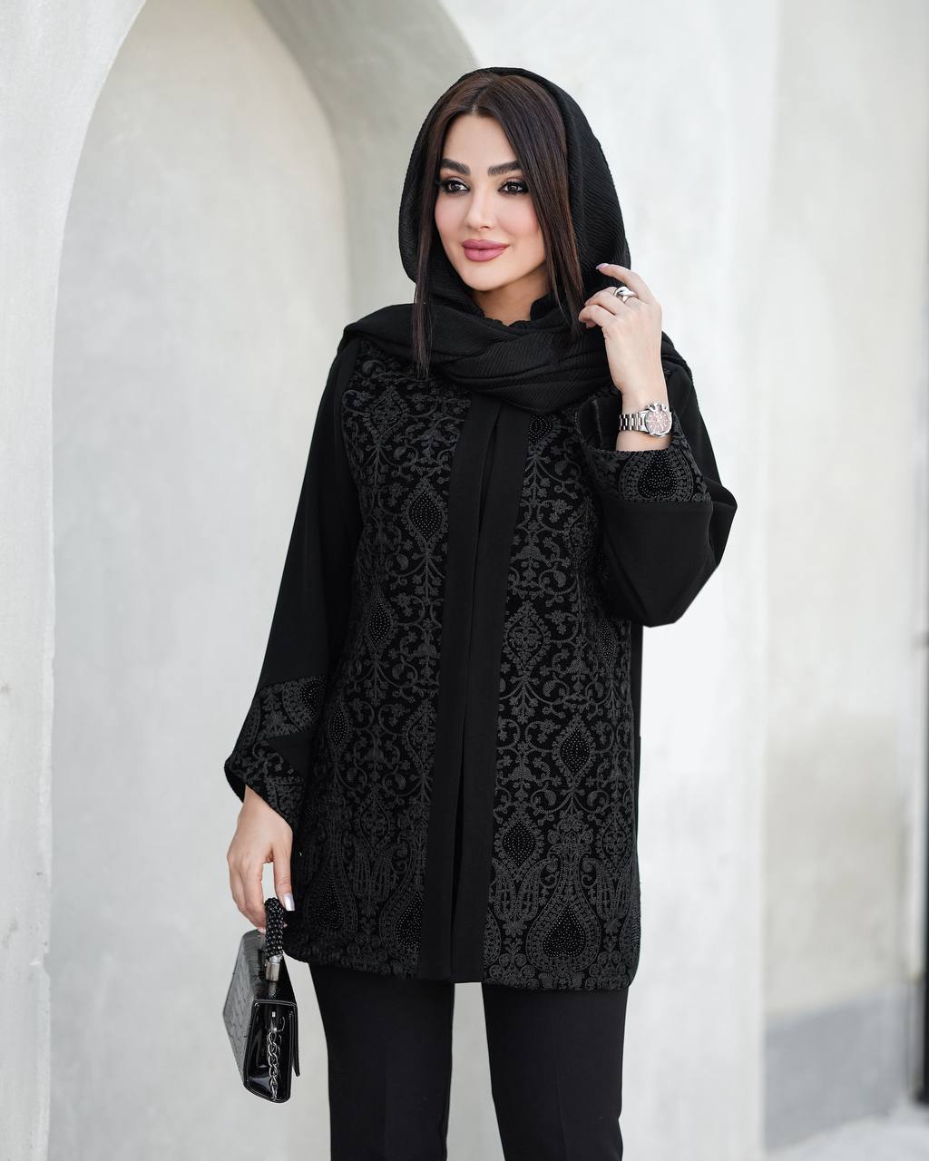 توضیحات🧵جنس پارچه:کرپ لکسوس جن بلک 🧥مدل:کت سوزن دوزی مدل آستین لاله دوخت برش صنعتی فوق العاده