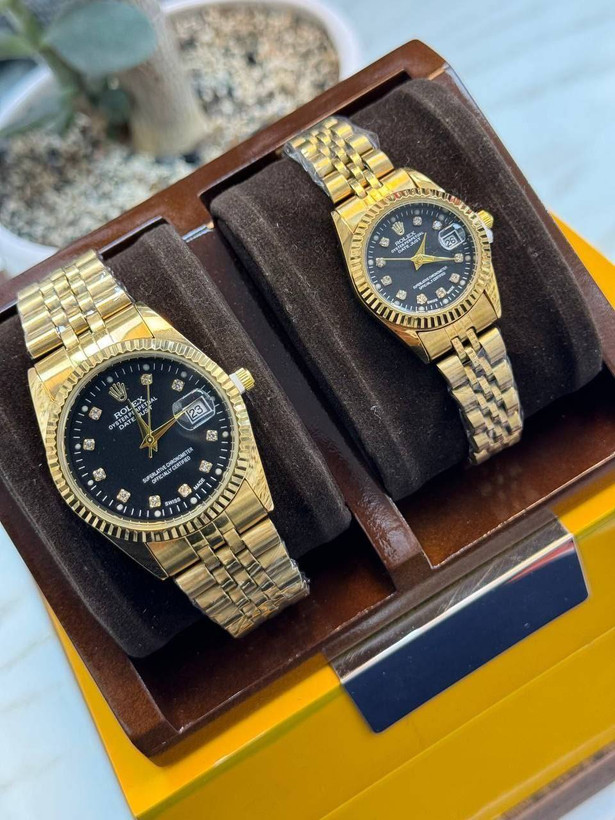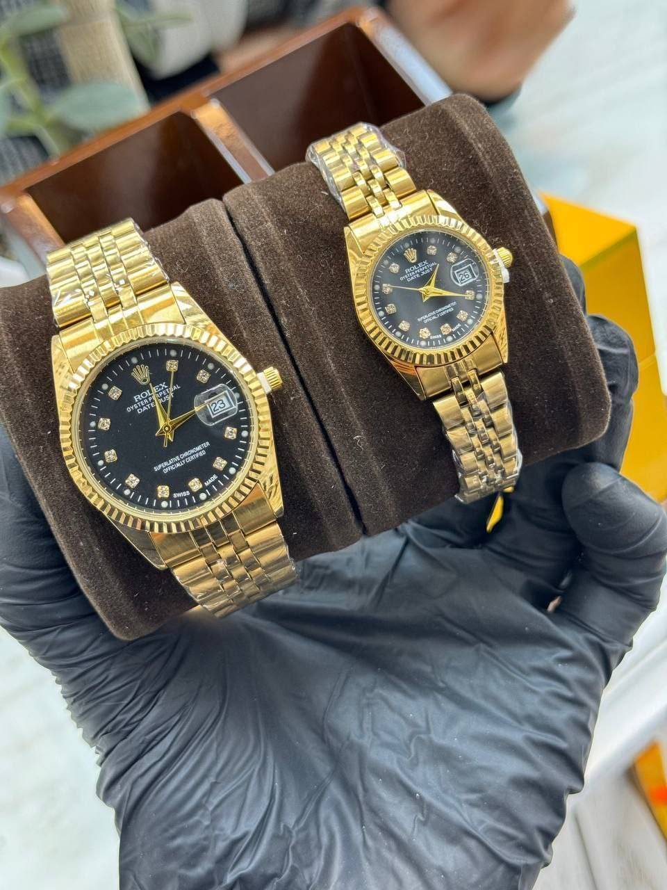 توضیحاتتقویم دار. شش ماه گارانتی موتور دارای جعبه کادویی بالشتک دار قطر صفحه مردانه 3 سانت قطر صفحه زنانه 2 سانت تقریبا 👗پرفرووووش 👗لاکچری پسند 👗شیک و عالی مناسب استفاده روزمره 👗فوق العاده ❤️ 👗. 🧵جنس : بند استیل