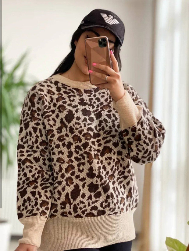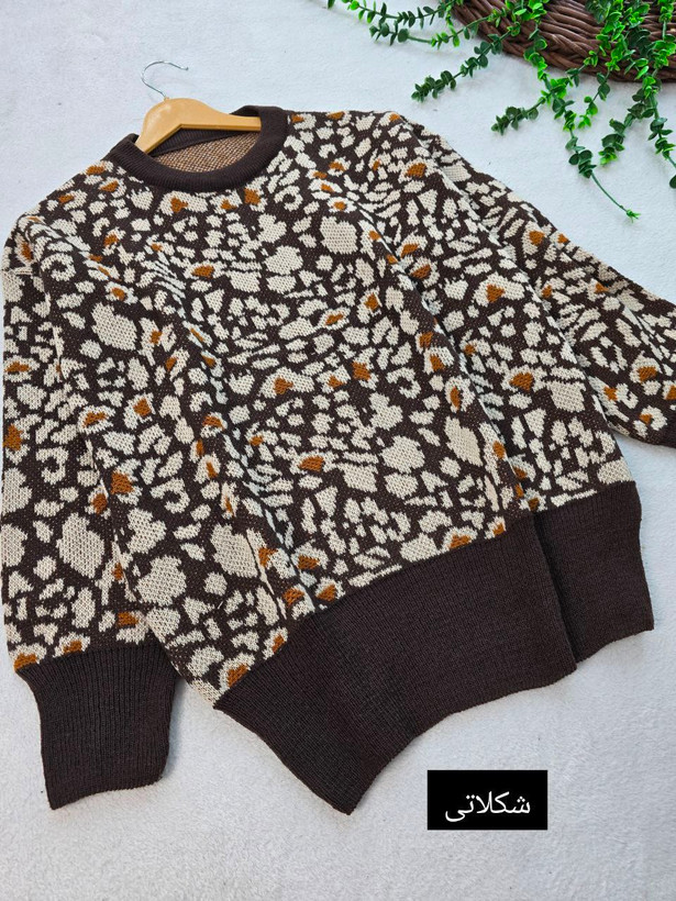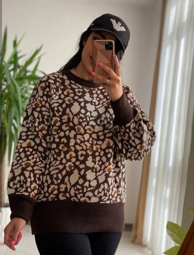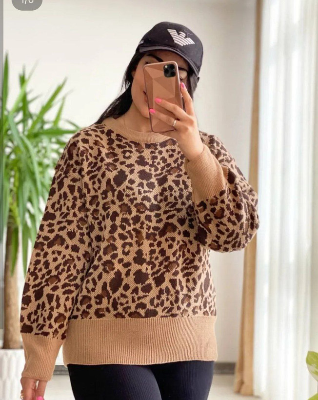 توضیحات: شناسه : #97215 🍁 نام : بلوز بافت پلنگی 🍁 جنس : بافت دوبل آکریل قد 65 دورسینه 114 آستین 51 بازو 44